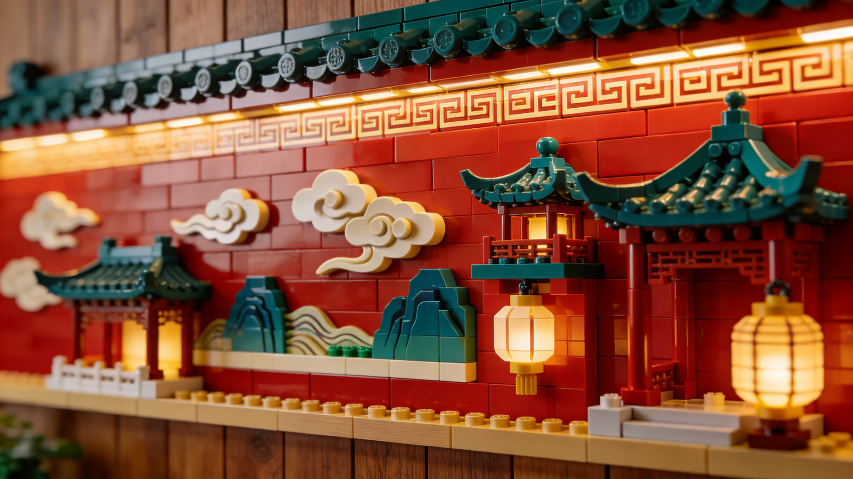更值得关注的是,LGOWALL 正将"设计服务"能力产品化。其开发的"墙景"SaaS设计工具已开放给室内设计师、教育机构使用,降低专业乐高墙设计门槛;同时,针对海外华人市场推出"新中式主题墙",将榫卯结构、水墨元素融入模块化设计。